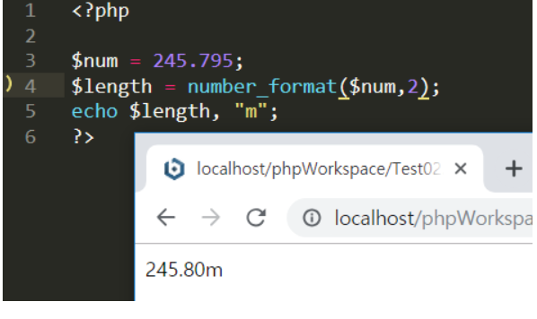이번에는 $num변수에 값을 선언하고, number_format함수에 파라미터로 2개를 넘깁니다.