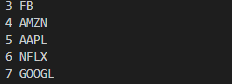 for idx, symbol in enumerate(FAANG,3):