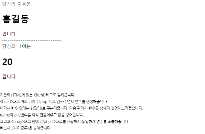 [PHP] 시작 태그와 종료 태그의 종류 / HTML코드에 PHP코드 삽입하기